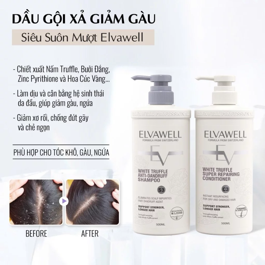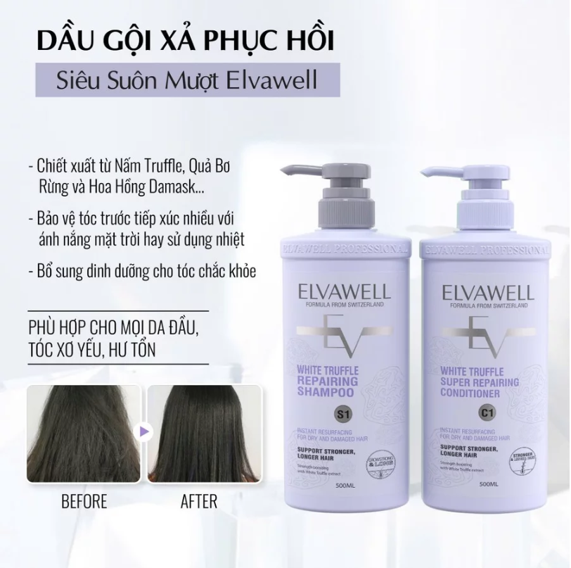 Bộ Chăm Sóc Tóc Cao Cấp Elvawell White Truffle (Công thức từ Thụy Sĩ)