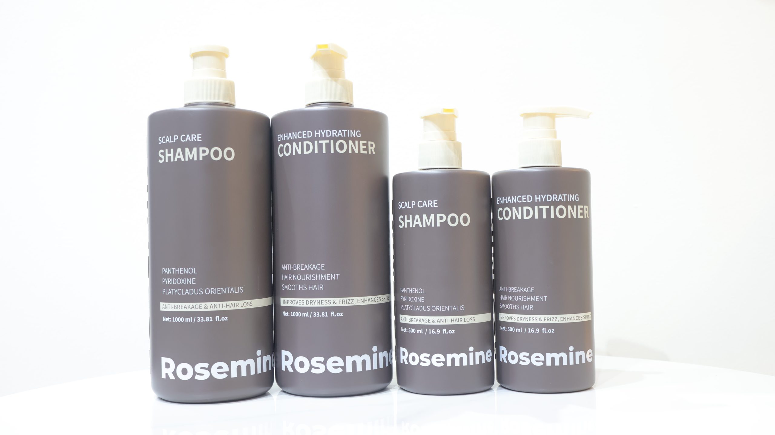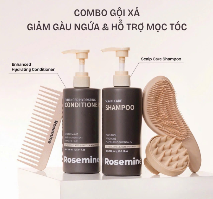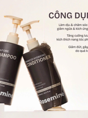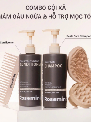 Dầu gội Rosemine Scalp Care giúp làm sạch bã nhờn và bụi bẩn trên da đầu, ngăn ngừa tình trạng tóc gãy rụng và nuôi dưỡng nang tóc khỏe mạnh. Dầu xả Rosemine Enhanced Hydrating tập trung vào việc cấp ẩm sâu, giảm tình trạng tóc xơ rối (frizz), phục hồi độ bóng và làm mềm mượt các sợi tóc khô sơ.