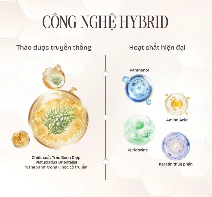 Sản phẩm tích hợp công nghệ chăm sóc da đầu tiên tiến với các hoạt chất như Panthenol và Pyridoxine giúp làm dịu và bảo vệ da đầu. Đặc biệt, chiết xuất từ cây Trắc Bách Diệp (Platycladus Orientalis) là thành phần then chốt giúp hỗ trợ ngăn chặn tình trạng rụng tóc hiệu quả. Khả năng cấp ẩm đa tầng giúp cải thiện cấu trúc tóc ngay từ lần sử dụng đầu tiên.