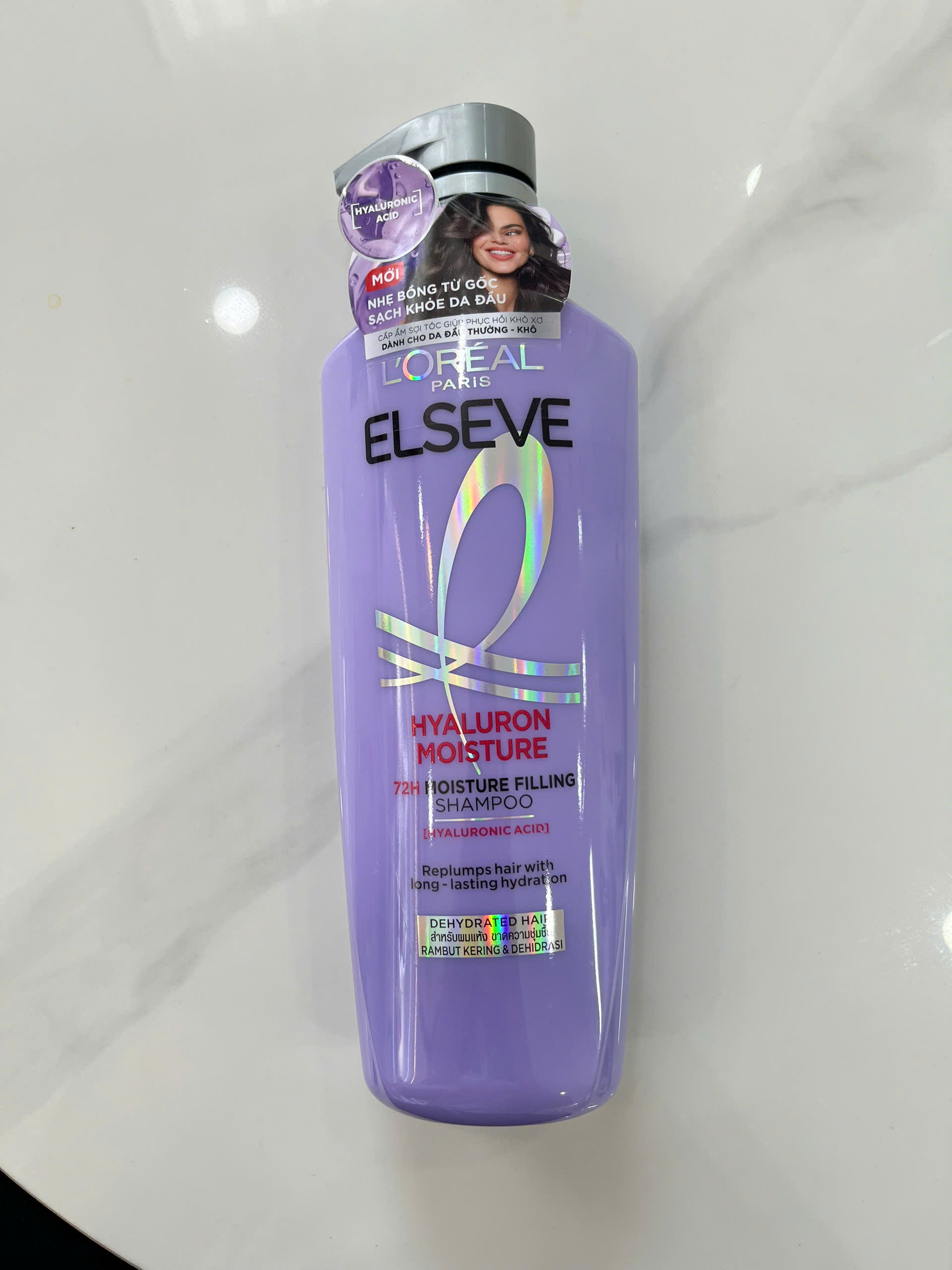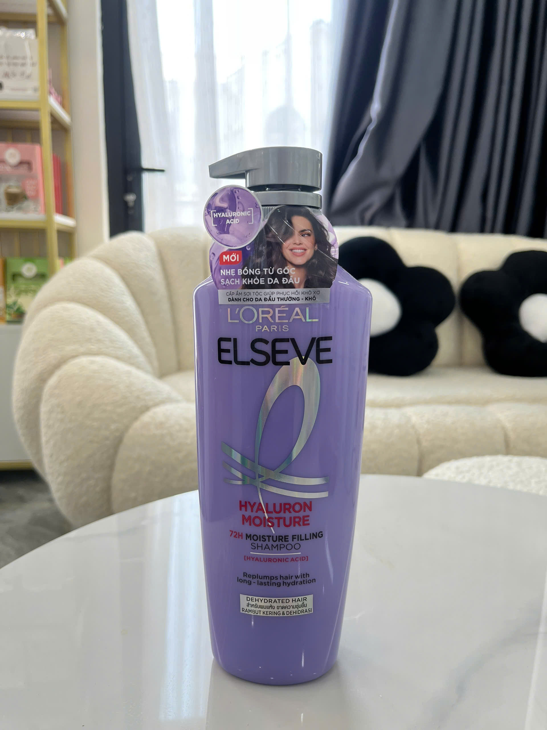 Aqua/Water, Sodium Laureth Sulfate, Hyaluronic Acid (Sodium Hyaluronate), Glycerin, Glycol Distearate, Sodium Chloride, Cocamidopropyl Betaine, Fragrance. (Thông tin tham khảo dựa trên công thức tiêu chuẩn của dòng Elseve Hyaluron Moisture).