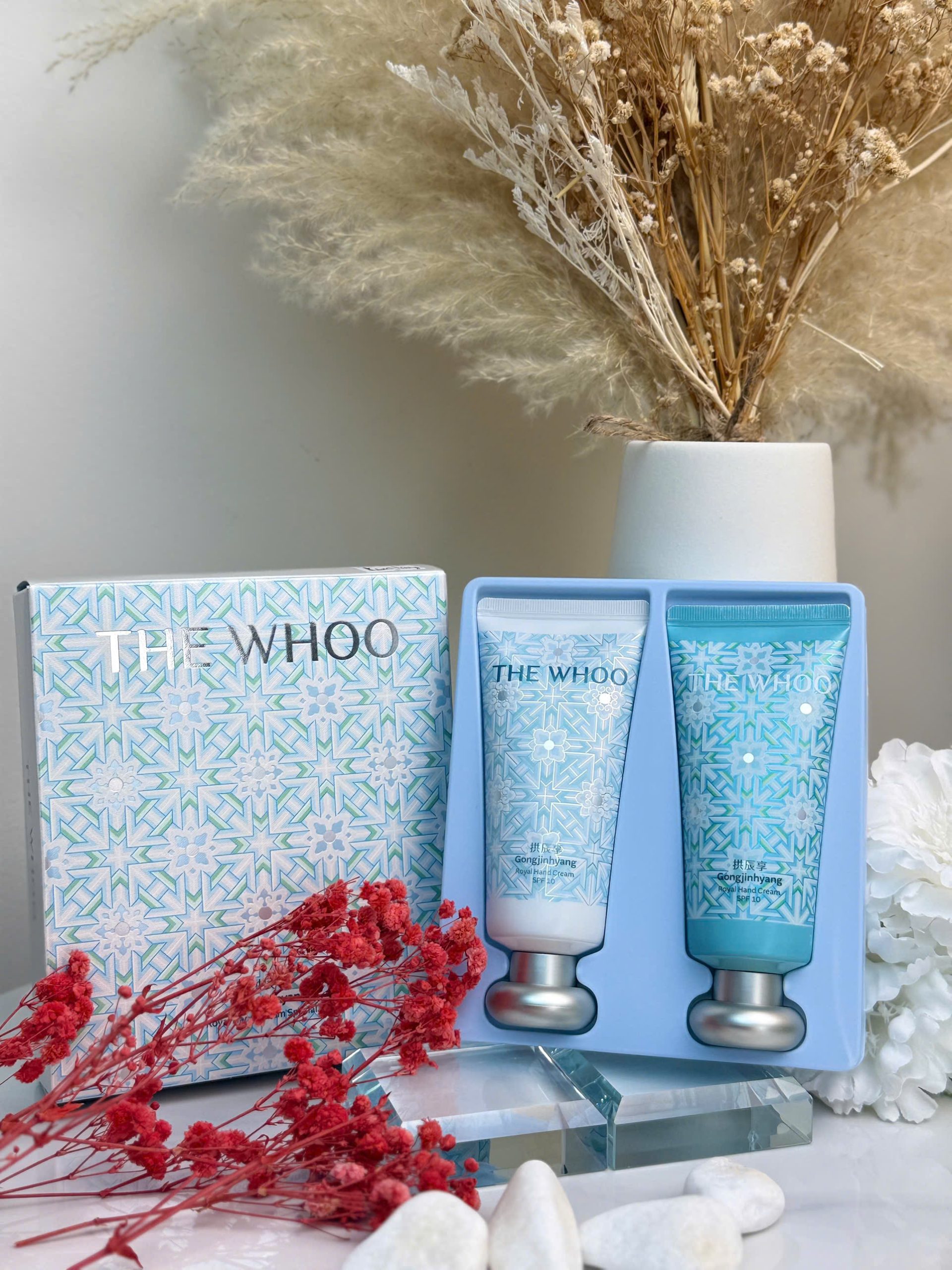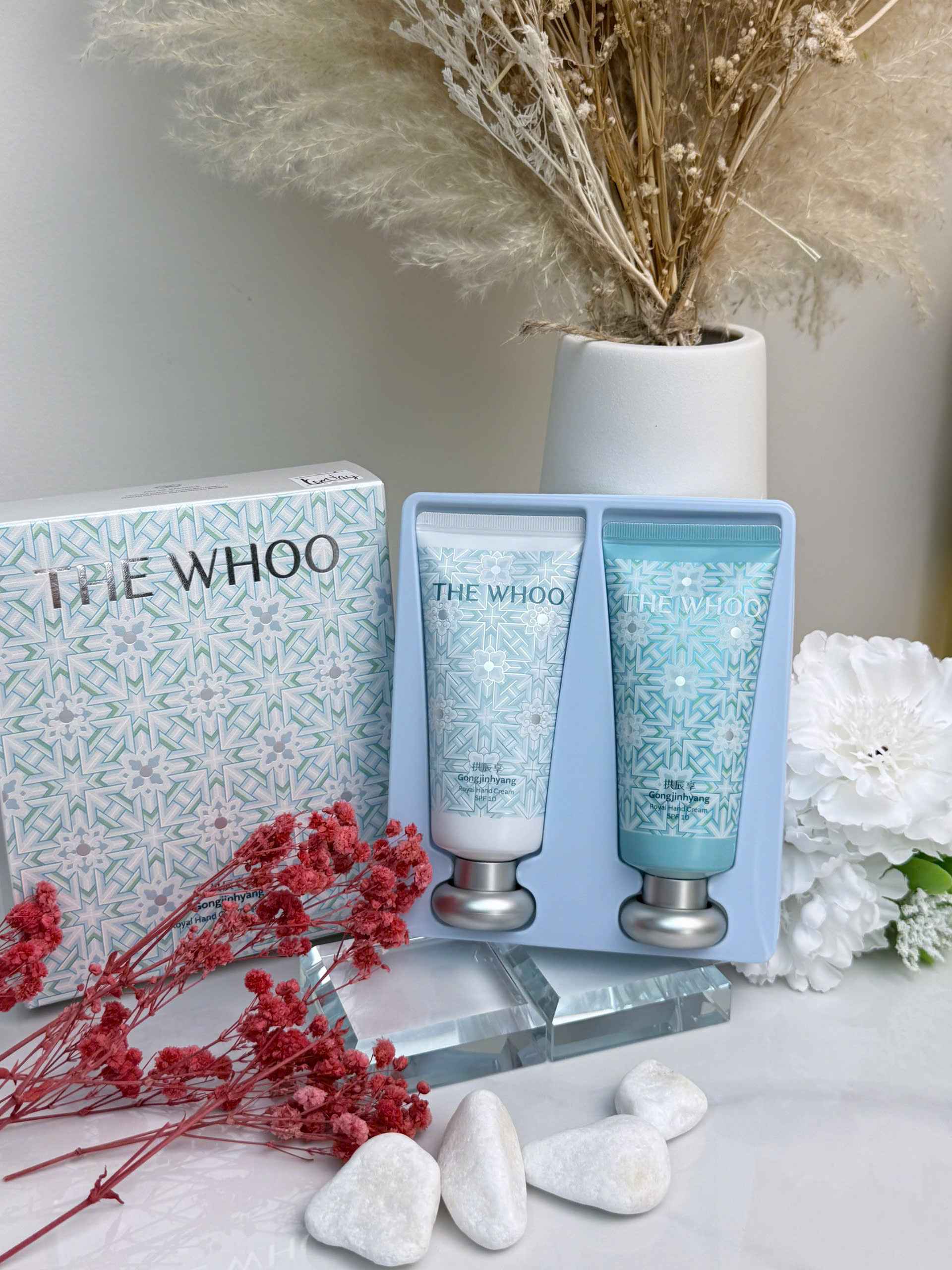 Đây là bộ sản phẩm dưỡng da tay cao cấp thuộc dòng Gongjinhyang của thương hiệu mỹ phẩm hoàng gia THE WHOO (The History of Whoo). Sản phẩm kết hợp giữa bí quyết dưỡng da đông y cổ truyền và công nghệ hiện đại, giúp nuôi dưỡng đôi bàn tay mềm mại đồng thời bảo vệ da trước tác động của ánh nắng mặt trời.